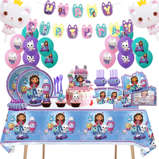 Gabby’s dollhouse purple party decorations set-table decor